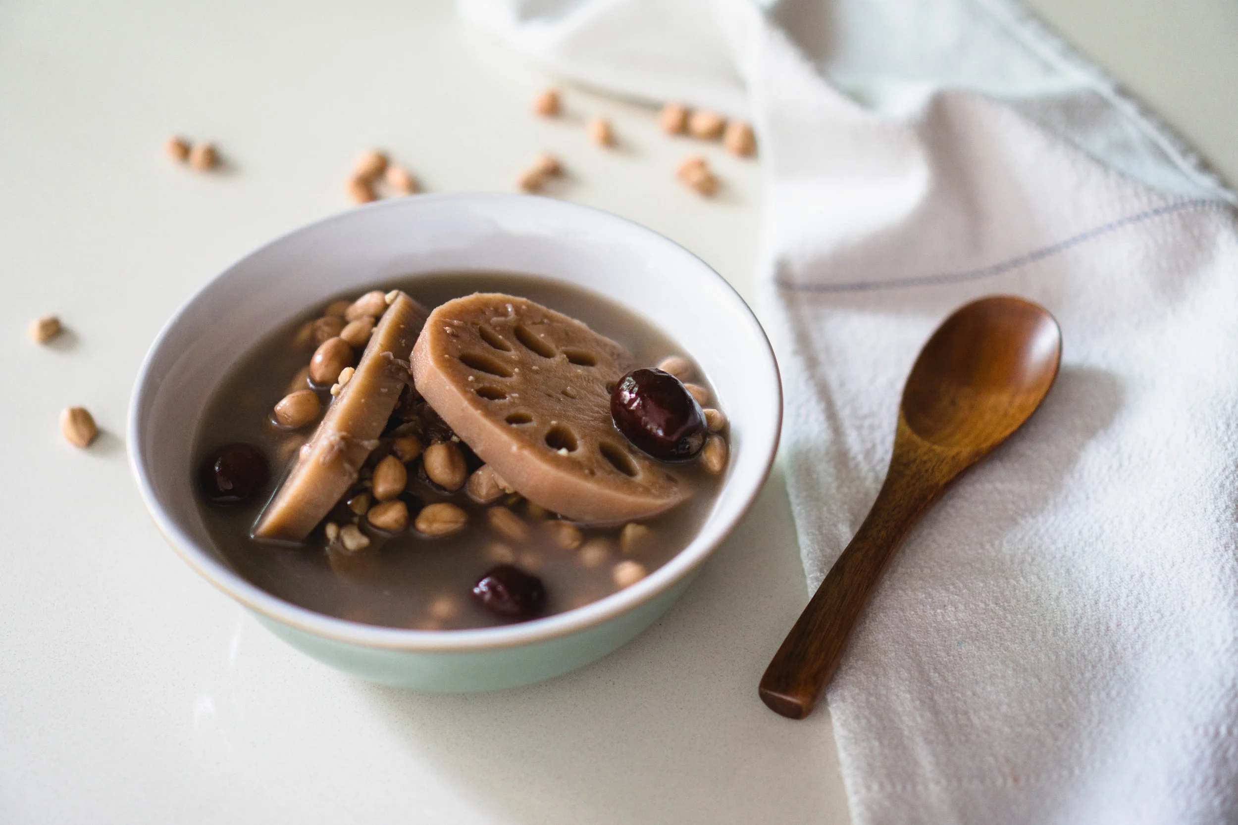 She recently made a lotus root and peanut soup, a staple of Chinese (Teochew?) cooking, again using coconut water in place of bone broth. And gosh the resulting broth was so viscerally comforting and umami-sweet, it just went and reinforced this wild, slight (coco)nuts concept for me. Vegan soups never tasted this good! So I'm a convert, which explains why her recipe is now here on the blog.